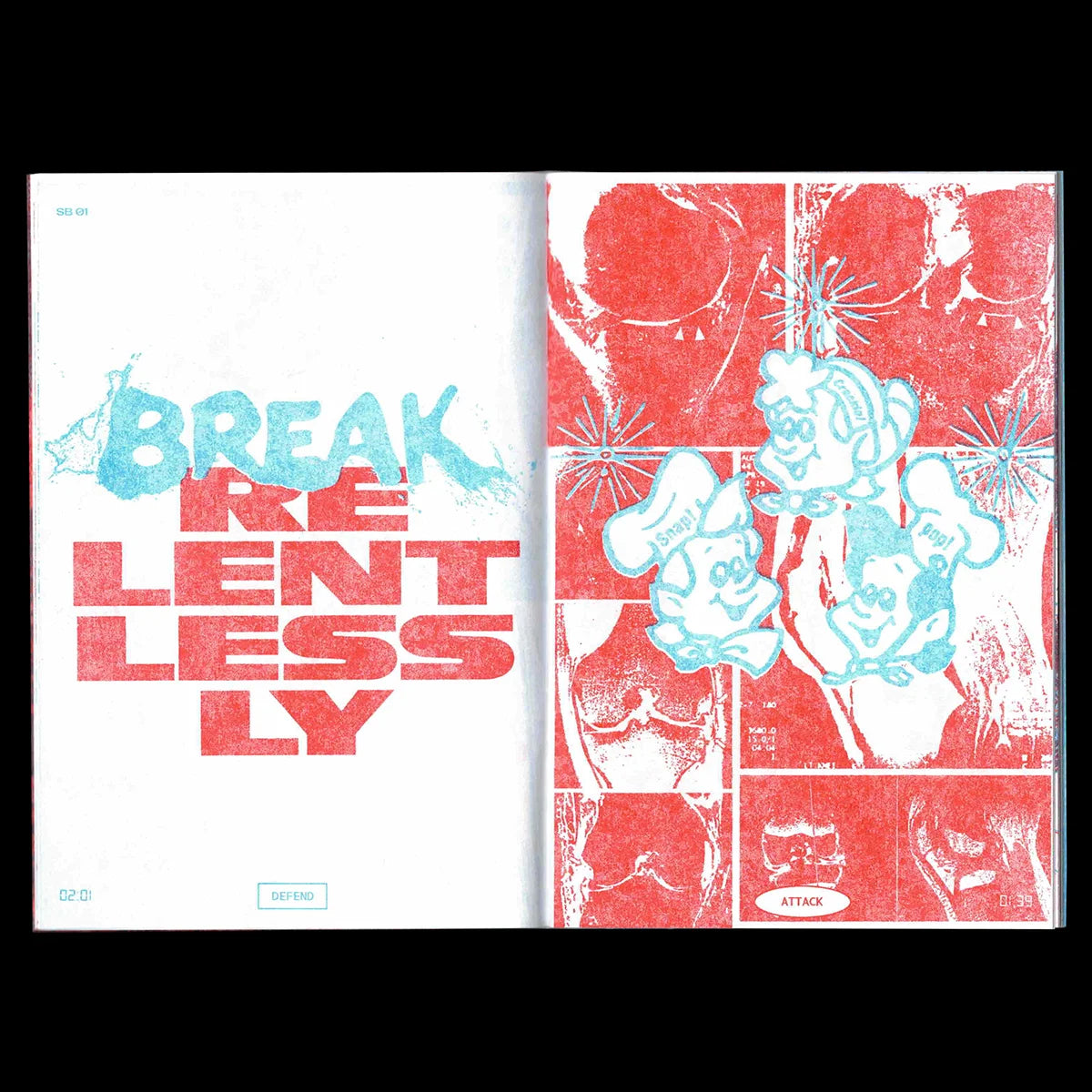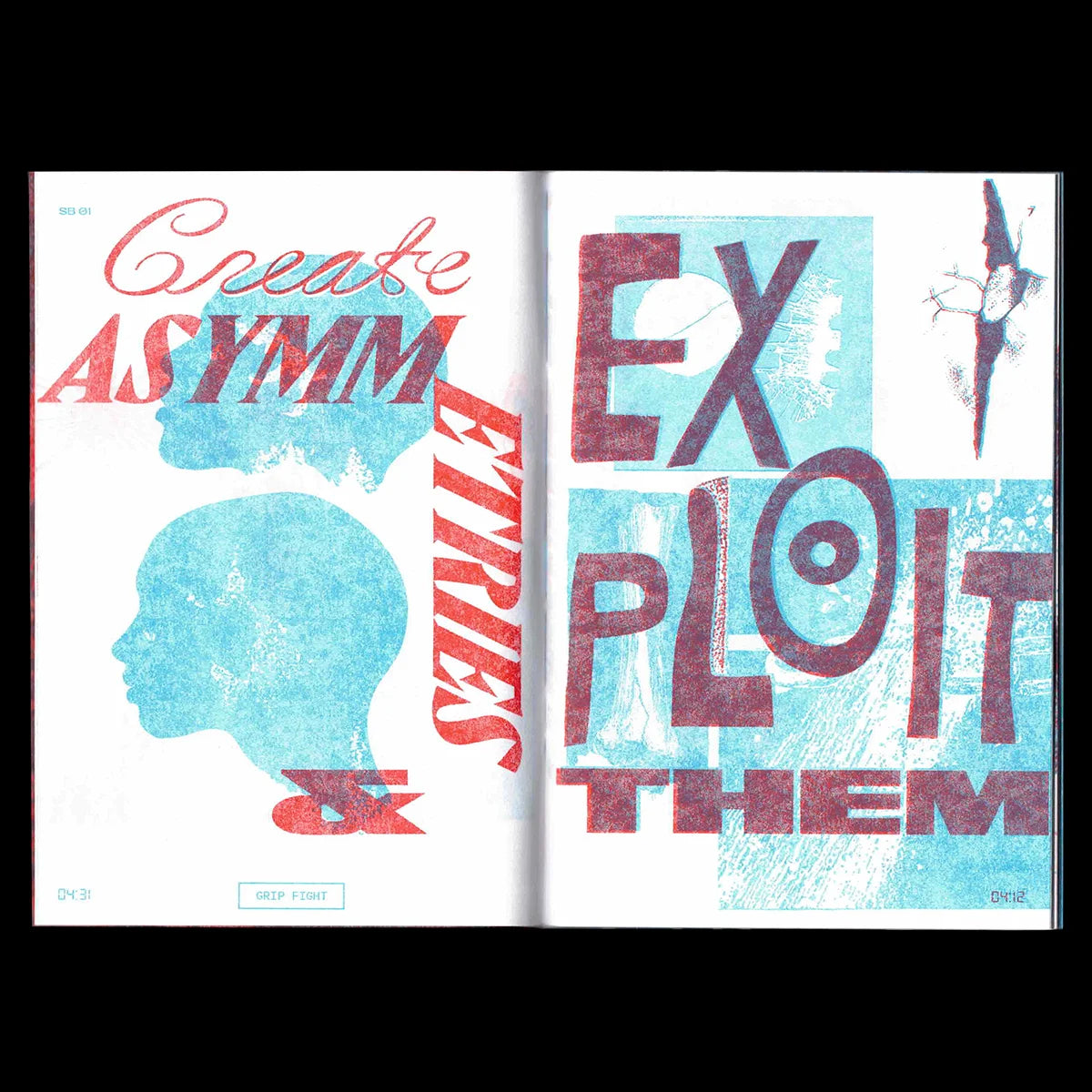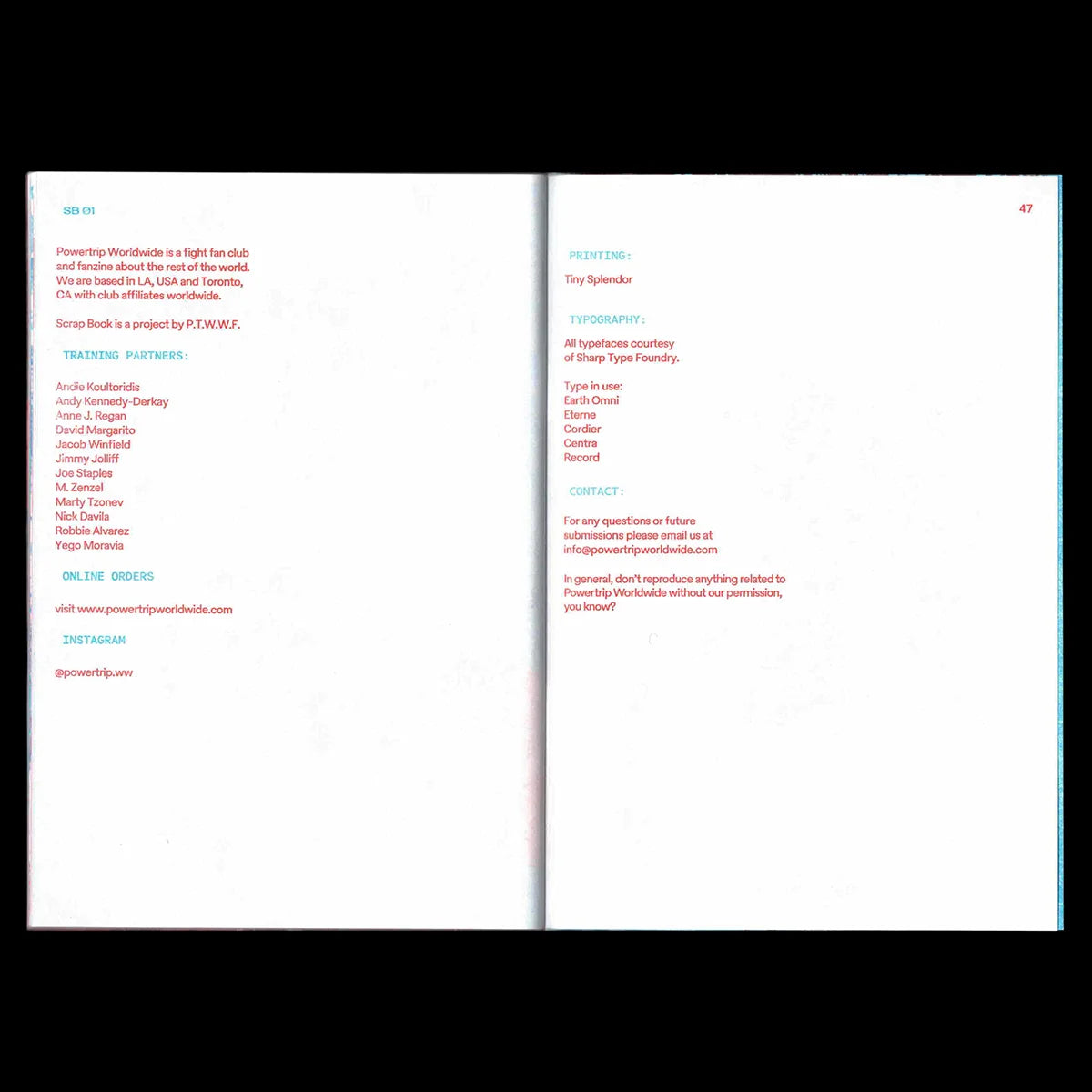 This is the first in our Scrap Book series. These are made with an evolving rule-based process inspired by the intensity of training camps. A 48-page, two-color print creative frenzy modeled after comp rounds to generate fodder for tape study later. First edition run of 200.