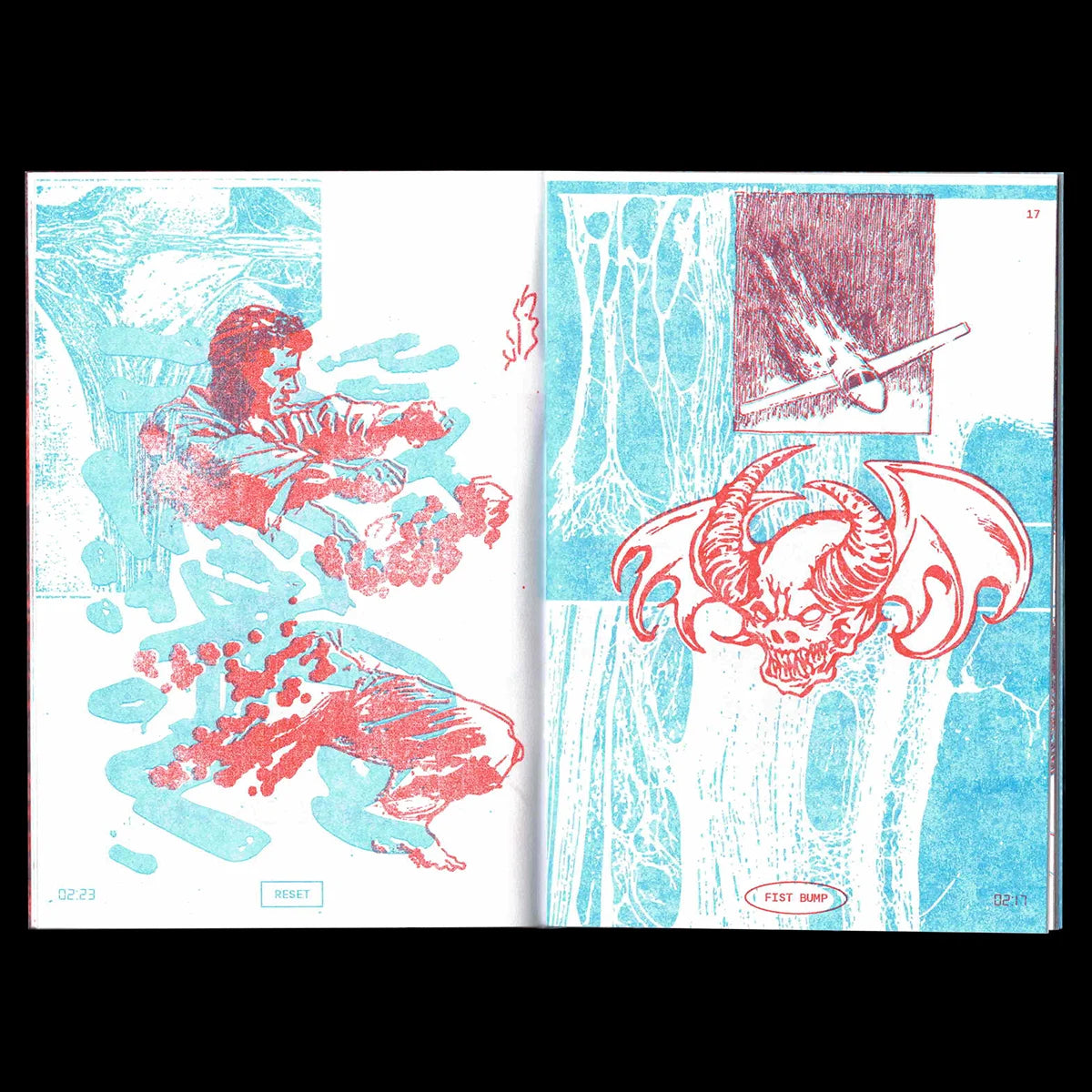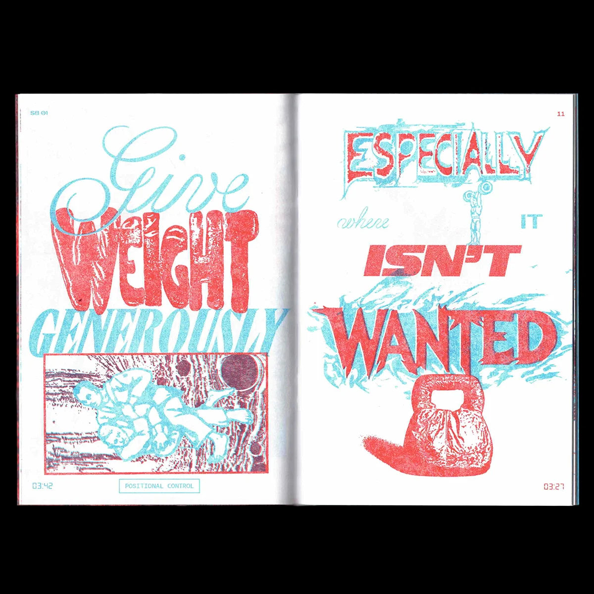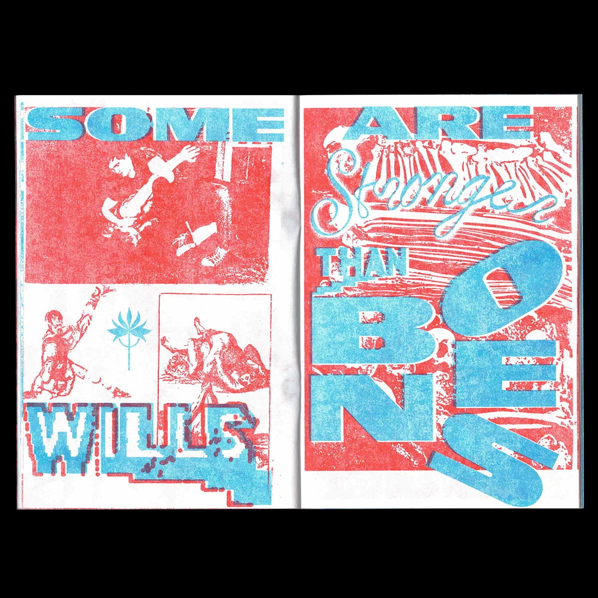 This is the first in our Scrap Book series. These are made with an evolving rule-based process inspired by the intensity of training camps. A 48-page, two-color print creative frenzy modeled after comp rounds to generate fodder for tape study later. First edition run of 200.